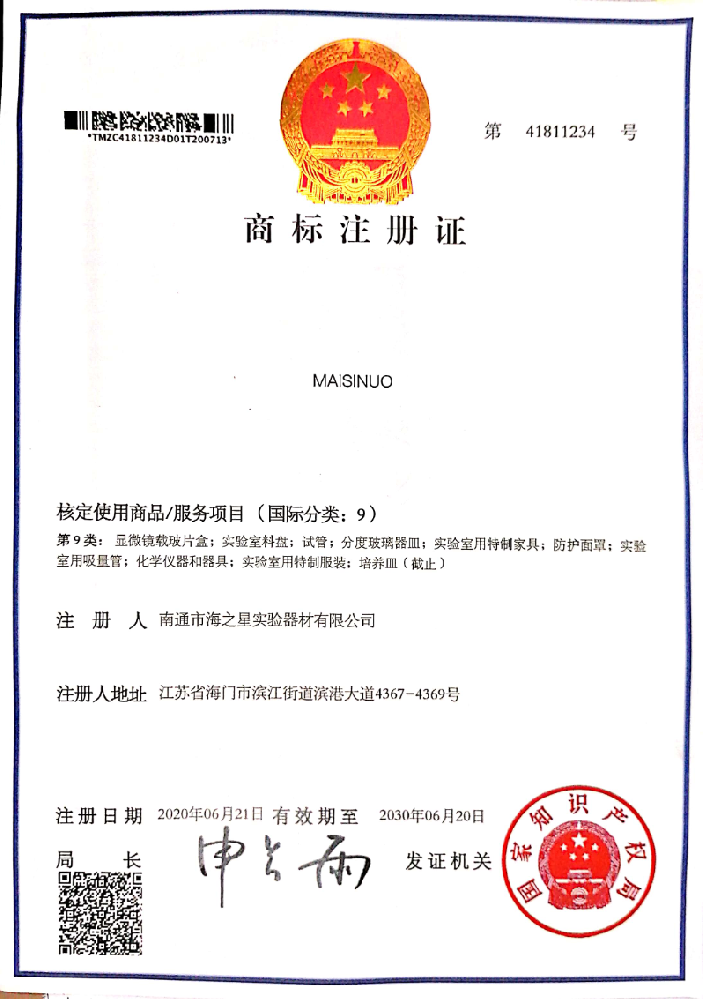 公司因發(fā)展需要,注冊(cè)麥斯諾英文商標(biāo)——“Maisinuo”實(shí)驗(yàn)室,